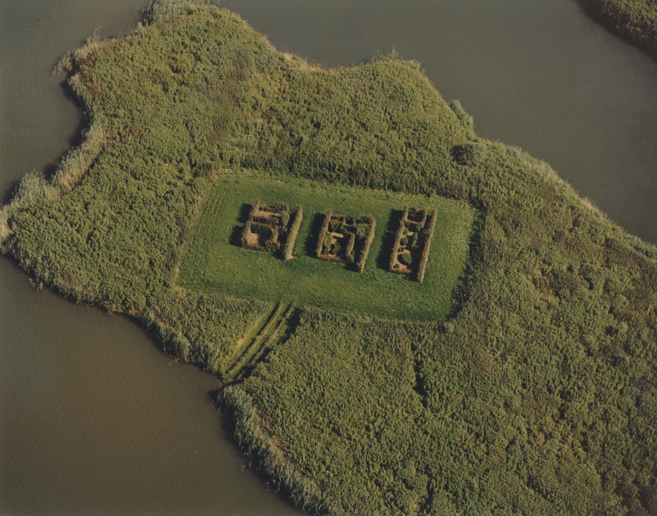 De vondst van kunstenaar Anne Mieke Backer is het materiaal waaruit ze haar “Monument voor een eengezinswoning” vormgaf, geen klei of marmer maar geschoren hagen. Vanuit de lucht kon je het zien liggen op een eilandje in de Leeghwaterplas. Het bestond uit drie delen, een begane grond compleet met bankstel en TV en een verdieping met twee slaapkamers, plus voor de volledigheid ook maar een vrijgezellenflat erbij.